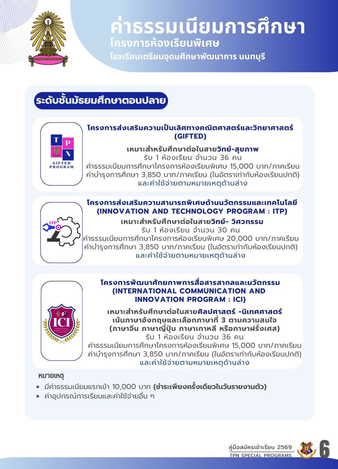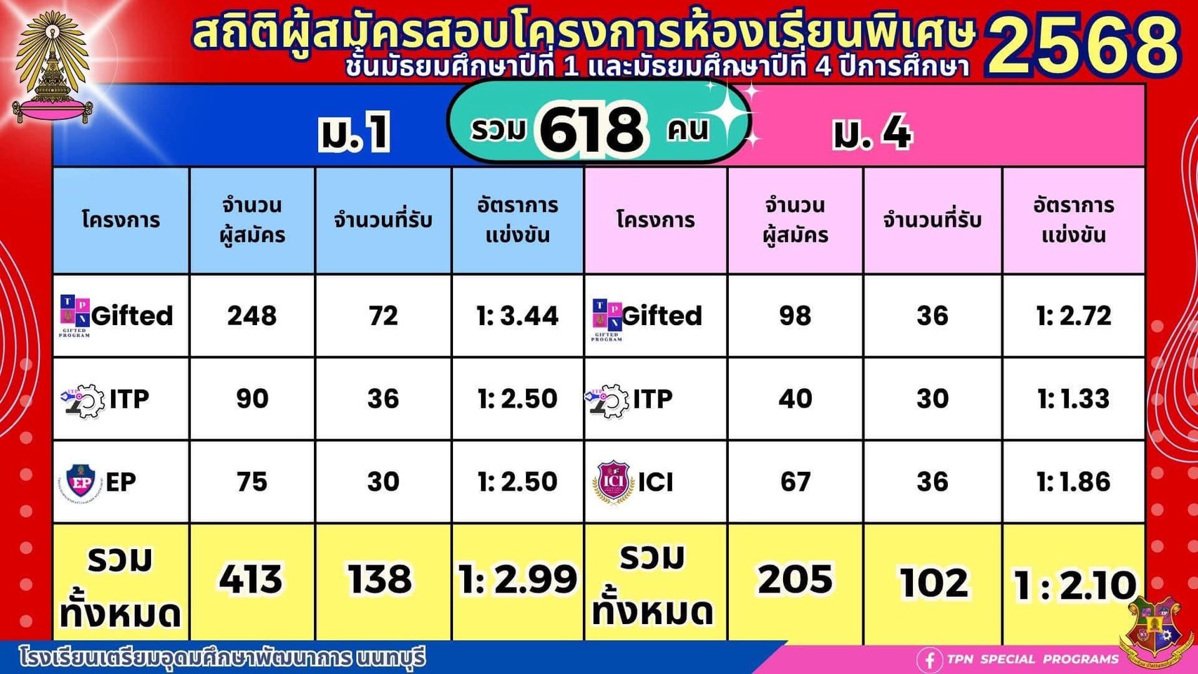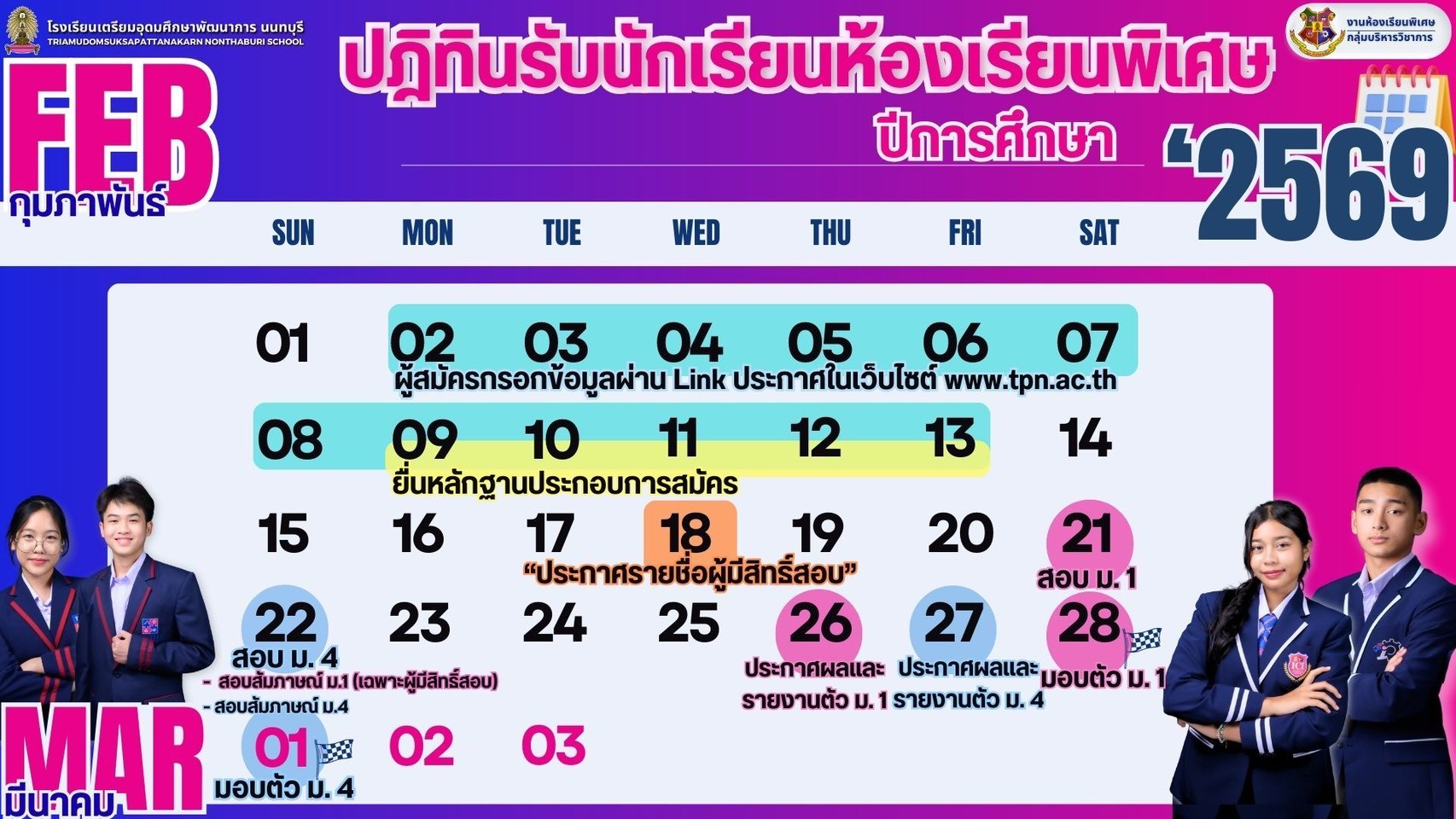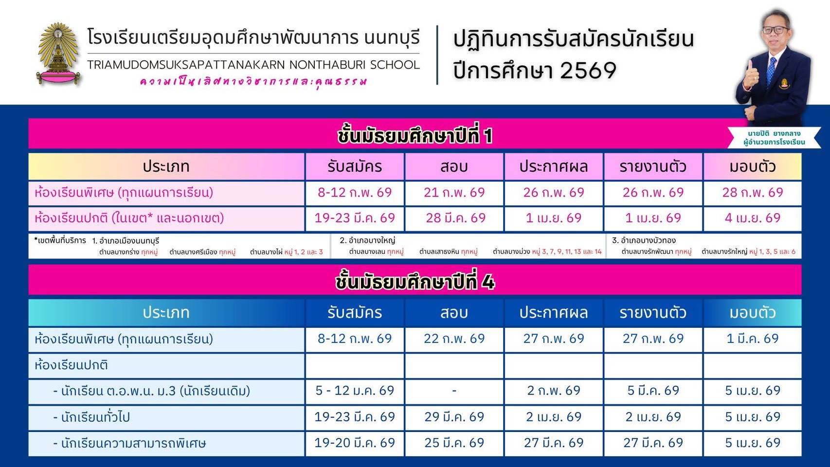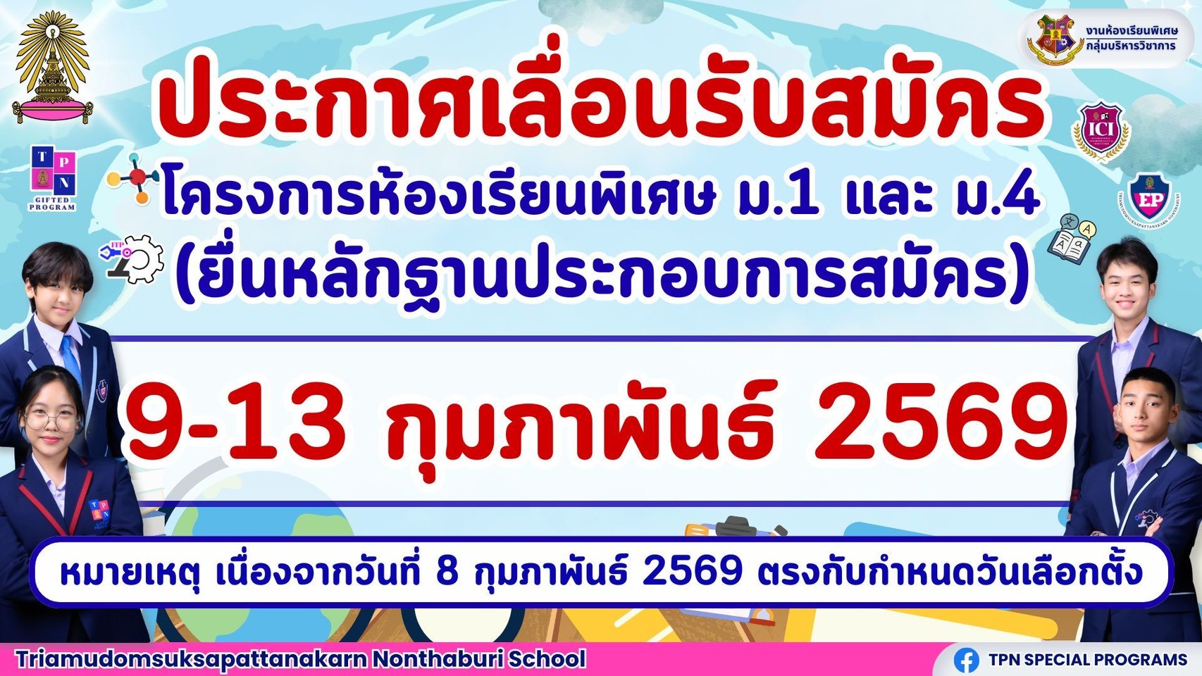 สมัครเรียนห้องเรียนพิเศษชั้นมัธยมศึกษาปีที่